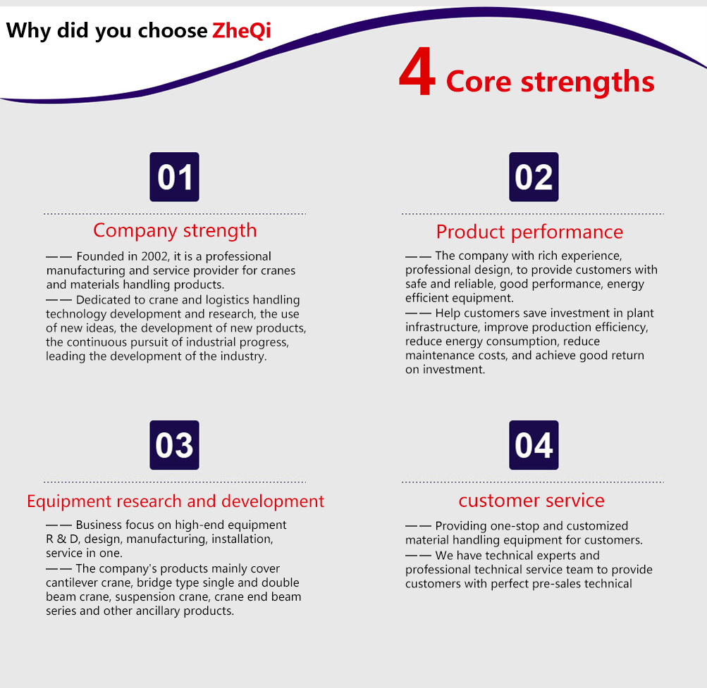 Hangzhou Zheqi Cranes.Co.,Ltd.founded in October 2002, is the famous steel wire rope electric hoist manufacturers and service providers, China headquarters is located in the scenic tourist city - hangzhou fuyang. Company since its inception, constantly introducing new technology, new technology, research and development of new products, develop the useful series of wire rope electric hoist, withstood the severe test environment, whether in factories, warehouses, electric power, steel, cement, paper making, mining areas, or in the field of modern logistics, military manufacturing, product quality and technical performance are always stay